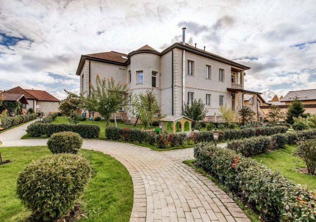 Коттедж 950 кв.м. с фонтаном из розового мрамора, участок 20 соток. Фундамент и перекрытия-монолит. Дом-кирпич. Отделка фасада песчаник. Балясины на фасаде-травертин. Красивые видовые характеристики