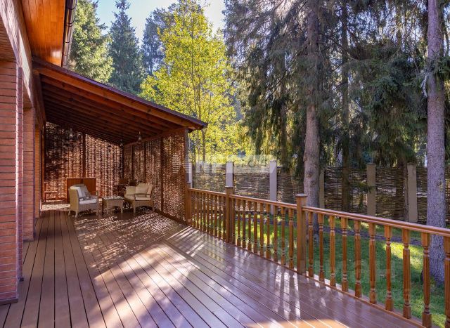 Лот: 9913207. ЭКСКЛЮЗИВ NF GROUP. Дом с мебелью 400 кв.м на участке 22.77 cот. Кол-во спален: 5. Кол-во с/у: 6. Поселок "Маслово Парк". Рублево-Успенское шоссе, 25 км от МКАД. Без комиссии для покупателя. Двухэтажный дом 400 м2 в лесном поселке Маслово Парк в 25 км от МКАД по Рублево-Успенскому шоссе. В доме завершен ремонт с отделкой высококачественными материалами. Дом оснащён продуманной системой климат-контроля с хронотермостатами Valtec, позволяющими управлять отоплением через Wi-Fi. Все комнаты подготовлены к подключению интернета и телевидения: проложены кабели UTP б категории для проводного подключения, телевидение возможно как эфирное, так и спутниковое — вся разводка уже выполнена. Интернет подведён по оптоволокну, оставляя выбор оборудования будущему владельцу. Дом подключён к центральному водоснабжению, поселковой канализации и магистральному газу. Установлен котёл Buderus (35 кВт), тёплые водяные полы в санузлах, защита от протечек. Электричество — 15 кВт с возможностью увеличения. В дом заведен оптико-волоконный кабель. Инверторная система кондиционирования скрытого типа и малошумная вентиляция обеспечивают комфортный микроклимат. Отличительной чертой дома являются панорамные окна, которые визуально расширяют пространство и создают ощущение единения с природой — на участке в 22 сотки прорастают вековые сосны. Есть возможность возведения и подключения к коммуникациям бани/СПА. Могут быть предложены проекты готовых решений. 1 этаж: входной холл, просторная гостиная с большим открытым камином, спальня, профессионально укомплектованная кухня, столовая с барной стойкой и выходом на просторную террасу с лаунж- зоной, санузел, постирочная, котельная , спальня-кабинет, кухня с выходом на малую террасу и зону барбекю. 2 этаж: холл, 4 спальни с санузлом и просторной гардеробной, терраса с видом на тихий участок, возможность выхода на 3-ий этаж, эксплуатируемая крыша. Поселок Маслово Парк расположен на территории Масловского леса, в 25 км от МКАД. В поселке предлагаются роскошные земельные участки с возможностью строительства собственного жилья по уже готовому проекту. Все дома спроектированы в современном стиле и обладают большой площадью остекления. На территории поселка предусмотрена красивая парковая зона и многофункциональный административный корпус. Удобная транспортная доступность, подъезд возможен по Рублево-Успенскому, Ильинскому и Новорижскому шоссе. Купить большой коттедж в деревне Маслово Московской области.