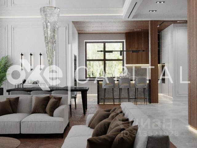 Установлена система приточно-вытяжной вентиляции, полностью разведена электрика, произведен монтаж теплого водяного пола и отопления, оборудована бойлерная. В ванных комнатах смонтированы закладные системы Geberit для установки сантехники.