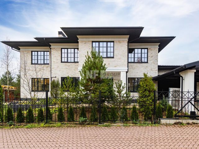 Современное домовладение общей площадью 1008 кв.м на живописном зеленом участке 32 сотки в 23 км от МКАД по Ильинскому шоссе в охраняемом КП Европа-1. Сам поселок утопает в зелени и находится в окружении огромного хвойного лесного массива со статусом особо охраняемая территория площадью 744 Га.