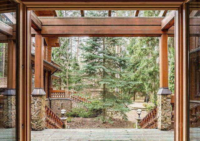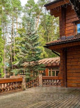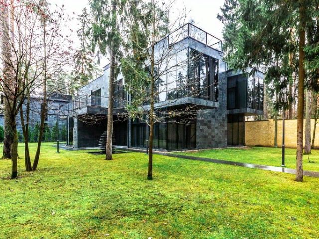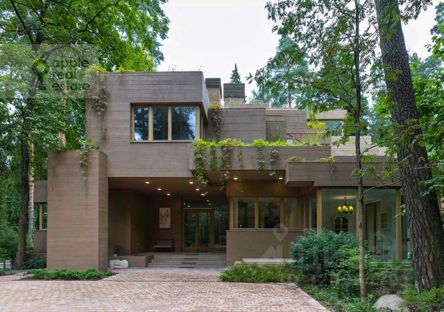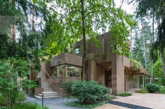 Кирпичный дом площадью 735 кв. м расположен на лесном участке размером 30 соток в элитном охраняемом поселке "Сосновый Бор", который находится в заповедной зоне векового леса.