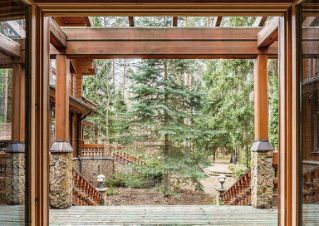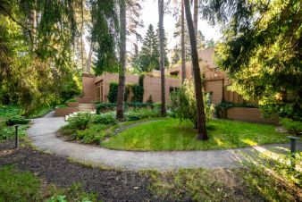 Дом расположен на живописном участке с вековыми соснами, имеющим уникальное расположение с двумя соседями. Участок правильной квадратной формы. Проведены ландшафтные работы: высажены кустарники и декоративные деревья, вымощены дорожки и установлено освещение.