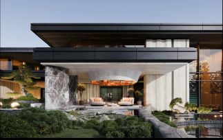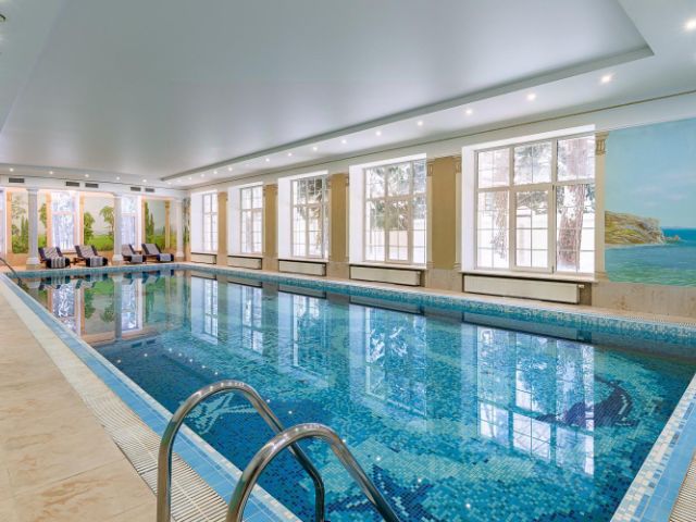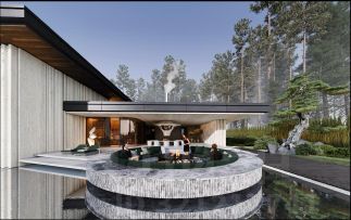 - Первый этаж: прихожая, кладовая, кабинет, санузел, кухня-столовая, гостиная с мраморным камином, терраса с подогреваемым полом, кладовая, котельная, прачечная, бассейн (8х4 м) с противотоком и выходом на участок, сауна, санузел и душевая, гараж на два авто.