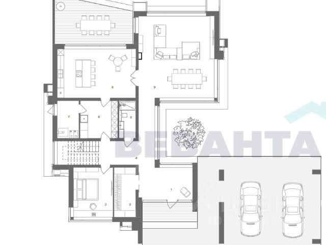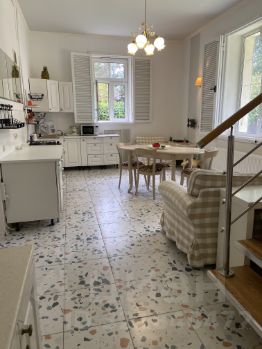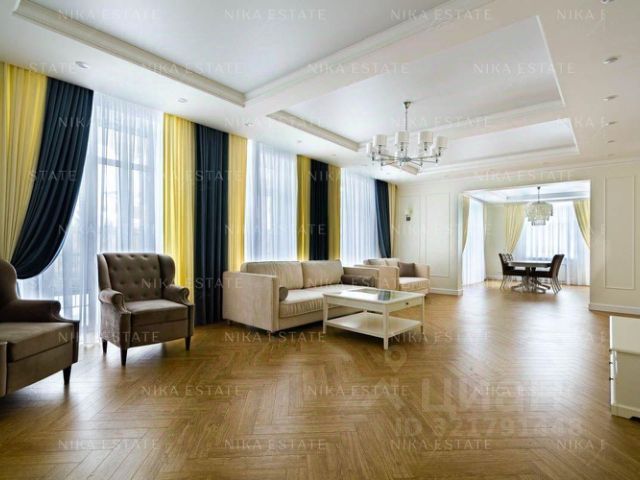 Высококачественная отделка, эксклюзивное цветовое решение стен, установлена современная кухня в натуральном шпоне, полностью укомплектованная шведской техникой Asko, вытяжкой Elica Hidden, встроенной док-станцией с моющим роботом-пылесосом и беспроводной зарядкой для телефона. Столовая-гостиная также полностью укомплектована стильной мебелью в натуральном шпоне.