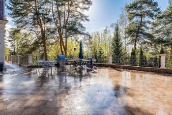 ID: 561185 ЭКСКЛЮЗИВ компании Barnes International Уникальная ЭКО - Усадьба всего в 17 км от Москвы на престижном направлении Рублево-Успенского шоссе! Закрытый комплекс для ценителей уединенности! Особенностью и уникальностью Эко-усадьбы является архитектурный стиль и дерево, которое использовалось при строительстве. * Пять домов, которые включают в себя СПА-зону с бассейном * Всего в 17 км от Москвы, * Панорамные виды и выход к пойме Москвы-реки * Собственное озеро и пляж Современная усадьба для отдыха и постоянного проживания! В стороне от шумных трасс в закрытом поселке в Знаменском расположился превосходный комплекс для ценителей уединенности. Сама усадьба находится на холме, откуда открывается вид на старинный монастырь и есть выход к пойме Москвы-реки. Территория площадью 146 соток выполнена каскадами, спускающимися к озеру, склоны укреплены сваями — 6 метров и монолитно залитыми бетонными стенами. Озеро на территории комплекса самоочищающееся, с пляжем и пирсом для ныряния, а зимой можно сделать из него каток. Есть место для постройки спортивной площадки. Здесь предлагаются пять готовых к заселению домов — основной дом с проходом в спа-зону и бассейном, дом для охраны с гаражом, два отдельных дома для отдыха и проживания и один домик для отдыха у пруда. Все дома выполнены из алтайского бруса, комната для отдыха в спа из кедра, а технические помещения и внутренние стены ограждения всего участка из сосны. Усадьба подходит для комфортного проживания в течение всего года — обогрев главного дома осуществляется газом. В остальных строениях предусмотрены отдельные котельные. Главный дом В главном доме есть столовая, кладовая/винная комната. Кухня полностью оборудована встроенной мебелью и техникой из Германии и Италии. Дополнительно предусмотрен блок кабинета с санузлом, гардеробной/оружейной комнатой и выходом на террасу. Гостевой блок оснащен санузлом, гардеробной. Есть отдельная терраса. Главная спальня с изящным камином включает санузел, гардеробную и выход на собственную террасу. В главном доме предусмотрены: * просторный холл с гардеробом; * гостевой санузел; * элегантная лестница из холла на второй этаж; * прачечная и блок хранения; * отдельные входы в центральную часть дома, на кухню и к кладовой. Можно любоваться живописными видами на озеро или пойму реки из зала площадью 70 кв. м с фасадной стеной. Благодаря второму свету с потолками высотой 6 м создается ощущение простора и свободы. Здесь же располагается большой камин с индивидуально выполненными изразцами и летняя открывающаяся терраса с барбекю. Из главного дома через зимний сад можно попасть в здание бассейна с сауной. В СПА зону предусмотрен и отдельный вход, где расположены холл, санузел и гардероб. Из холла можно выйти в зону сауны с кварцевыми солеными камнями, душ и купель. Из фасадных панорамных окон высотой 2 м открываются виды на озеро и пойму Москвыреки. Комната отдыха представлена с камином и террасой, с которой открывается вид на озеро. Бассейн длиной 20 м и шириной 5 м, с собственной террасой, имеет противоток. В строении есть топочная с местом для хранения дров и отдельным входом, котельная для главного дома, дома охраны и бассейна, а также подземный этаж с коммуникациями. Отдельные жилые дома На участке есть два отдельных дома с собственной парковкой на 45 машиномес