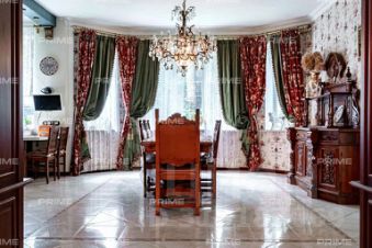 Уникальная резиденция на лесном уединённом участке в 228 сот. с профессиональным теннисным кортом, расположенная в охраняемом посёлке "Паншер" в Московской области, Одинцовский р-н., д.Маслово (Николина Гора) на 22км Рублево-Успенского Шоссе. В посёлке всего 15 участков, что обеспечивает спокойствие, комфорт и высокий уровень безопасности. В доме установлены системы безопасности (пожарная, охранная сигнализация), система приточно-вытяжной вентиляции с увлажнением, кондиционирование. Инженерное оснащение коттеджа соответствует высокому уровню премиальных загородных резиденций: выделенная электрическая мощность 45 КВт, подключён сетевой газ, имеется собственная водяная скважина. На участке выполнен ландшафтный дизайн, уличное освещение, проложены мощёные дорожки. Территория участка ровная, с дренажем, ливневой канализацией, оснащена системами безопасности: видеонаблюдение и охранная сигнализация. На участке имеются: • Основной дом из кирпича - 3 этажа (с цоколем) и мансардный этаж общей площадью 955,5 квм • Гараж деревянное каркасное здание в 2 этажа, общей площадью 155 квм (на 2м этаже спортзал и блок для персонала) • Дом для охраны • Шашлычный домик • Профессиональный теннисный корт • Уличная спортивная площадка • Декоративный сад с плодовыми деревьями и кустарниками • Открытая стоянка на 15 м/м Основной дом в 3 этажа (с цокольным этажом) и мансардным этажом общей площадью 955,5 квм, в т.ч.: • 1й этаж: прихожая, холл, гостиная с эркером (второй свет), кухня-столовая, кабинет, с/у, СПА зона с бассейном и банным комплексом, террасы • 2й этаж: 3 спальни, 2 с/у, гардеробная, балкон • Цокольный этаж: бильярдная, винный погреб, кинозал, гардеробная, кладовая, с/у, постирочное и гладильное помещение, котельная, прочие технические помещения. • Мансардный этаж: библиотека, блок для персонала с 1й спальней и с/у. Гараж - деревянное каркасное здание в 2 этажа, общей площадью 155 квм, в т.ч.: • 1й этаж: гараж на 2 м/м с возможностью мойки, система хранения, зарядка электрокара. Котельная, помещение для хранения спорт. инвентаря. • 2й этаж: в одной части - спортзал с раздельными санузлом и душевой; в другой части кухня-гостиная, спальня с двумя кроватями и санузел.