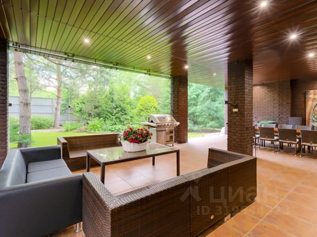 Арт. 112436138 Вашему вниманию представлен загородный дом площадью 950 кв. м на прилесном участке в охраняемом коттеджном поселке "Десять Ярдов", расположенном в 5 км от МКАД по Рублево-Успенскому шоссе, рядом с деревней Раздоры. Почувствуйте ритм современности и дыхание леса! Этот дом воплощение стиля: смелая архитектура встречается с просторным участком, прилегающим к лесу. Идея для мечтателей: оформите прилегающий лес в аренду ваше личное царство тишины и покоя! Солнце через гигантские окна заливает каждый уголок теплом и светом, наполняя пространство воздухом и открывая живописные виды, меняющиеся как картины в галерее. Жизнь в потоке света и природы! В доме выполнен дизайнерский современный ремонт, использованы исключительно европейские дорогостоящие материалы, кухня полностью оснащена техникой Kuppersbuch, встроенная и мягкая мебель от ведущих мировых производителей. Имеется канальное кондиционирование по всему дому, а также индивидуальное кондиционирование в каждой комнате - решение, которое позволяет создать свой уникальный климат. Первый этаж имеет уникальную спа-зону: бассейн с противотоком 11.5м х 4.5м, сауна и зоны отдыха. В цокольном этаже расположились несколько досуговых решений: отдельный зал с кинотеатром, оснащенный техникой Bowers&Wilkins, игровая комната с игральными столами и бильярдом, а также отдельное помещение с мини-тренажерным залом. В доме все центральные коммуникации: газоснабжение, электричество, водопровод, канализация. Оборудована котельная, установлено дорогостоящее оборудование De Dietrich. Полная автоматизация управления (освещение, климат) на базе премиальных интегрированных систем. На территории участка имеется отдельный гостевой двухэтажный дом площадью 250 кв. м с гаражом на два автомобиля. Данный дом полностью мебелирован, имеет три изолированных апартамента и полностью оборудованную кухню. Просторный участок 30 соток ухожен и утопает в зелени: украшением и гордостью являются красные клены, привезенные из Германии. Участок прилегает к Серебряноборскому лесничеству, часть лесных земель которого можно взять в аренду. Планировка: Цоколь: бильярдная, кинотеатр с баром, винный погреб, прачечная, кладовая, сейфовая комната; 1 этаж: спальня с ванной комнатой, кабинет-библиотека, каминный зал, бассейн, сауна, ванная комната, раздевалка, спортзал, ванная комната; 2 этаж: мастер-спальня с ванной и выходом на террасу, гардеробная, спальня с ванной комнатой и гардеробной комнатой, спальня с ванной комнатой и гардеробной. Камерный коттеджный поселок "Десять ярдов" расположен около деревни Раздоры в 5 км от МКАД по Рублево-Успенскому шоссе. На удивительной по красоте территории есть множество водоемов и свыше 20 охраняемых природных объектов. Благополучная экологическая обстановка, живописные ландшафты, тишина и покой делают этот поселок еще более привлекательным для покупателей. Поселок "Десять ярдов" подходит для постоянного проживания, можно добраться до Москва- Сити менее чем за 20 минут по высокоскоростной трассе М-1. Коттеджный поселок "Десять ярдов" состоит всего из десяти домов, разработанных знаменитым прогрессивным архитектором Еленой Кочетковой. Для всех сооружений характерны оригинальные геометрические формы, которые делают их не похожими друг на друга. Все дома идеально гармонируют с окружающим лан