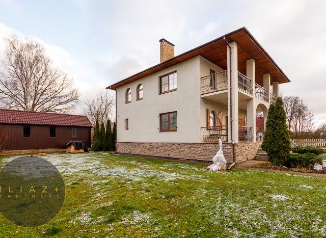 Площадь 344 кв.м. 4-уровневый (1 этаж - прихожая, кухня-столовая, гостиная с бильярдом и камином, с/у, 2 этаж - холл, 3 спальни, с/у, спортивный зал со столом для настольного тенниса и игры в дартс, мансардный этаж - оборудована гостевая спальня и хозяйственные помещения, цокольный этаж - сауна, бассейн, душ, комната отдыха, постирочная, хозяйственные помещения). В крыле имеется теплый гараж. Коттедж полностью меблирован, паркетные полы в жилых комнатах, вся бытовая техника, готов к проживанию. Фундамент - ж/б блоки, межэтажные перекрытия - ж/б плиты, стены из кирпича, облицован плиткой из натурального песчаника и декорирован элементами из натурального известняка и гранита. Богатая входная группа. Крыша из натуральной черепицы. Коттедж выглядит очень стильно.