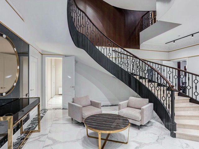 На продажу предлагается дуплекс, под ключ, общей площадью 400 кв.м., в стиле Прованс в элитном коттеджном поселке Довиль. В доме продуманный дизайн с ориентиром на непревзойденное качество материалов и их гармоничное сочетание между собой. Сантехника, смесители: Migliore, ArtCeram, Hansgrohe, Grohe, Boheme, Timo Helme, BelBagno, Kerama Marazzi, Плитка керамическая: Испания, Россия. Столешницы, оклады ванных, подоконники, душевые кабины - Натуральный мрамор. Пол: 1-го этажа - натуральный травертин (с подогревом) 2-3 этаж - инженерная доска из дуба Стены- Обои (Италия) Лестница- Ступени из мрамора, подступеньки из травертина Встроенная подсветка ступеней- Кованые перила Окна- Деревянные Германия, ручки Италия Лепнина- Натуральный гипс Двери, плинтуса, встроенные гардеробные шкафы, библиотека, шкаф в кабинете, декоративные решетки батарей, декоративные панели вокруг ванн, встроенные шкафы и тумбы под умывальники в ванных комнатах, гардеробные, кухня - индивидуальный заказ. Планировочное решение спроектировано максимально функционально: Хозяйственная часть с отдельным входом. - Комната персонала, с/у персонала, 2 кладовые для багажа, спортинвентаря, новогодних украшений, постирочная (встроенные шкафы для белья, бытовой химии, стиральная и сушильная машины Miele, глубокая раковина для ручной стирки, мытья животных). - Котельная (с отдельным входом). Газовый Котел Vailant (4 контура-отопление, горячая вода, теплый пол, приточно-вытяжная вентиляция) с датчиком уличной температуры, водоочистка, водоподготовка, блок датчиков протечки (установлены во всех мокрых точках), газоанализаторы, блок управления приточно - вытяжной вентиляцией. Кухня - витрины для посуды с подсветкой. Техника Smeg (индукционная варочная панель, духовка, посудомоечная машина), встроенный холодильник и отдельная встроенная морозильная камера Libherr), столешница- искусственный камень. Столовая - свечной камин с вытяжкой и мраморным порталом. Летняя терраса - прозрачная крыша из монолитного поликарбоната на металлической конструкции с элементами ковки, текстильная сдвижная система штор от солнца. В непогоду и на зиму закрывается по периметру мягкими окнами из ПВХ. Система видеонаблюдения, охрана система Росгвардии, Wi-Fi по всему дому, пожарная сигнализация. - Батареи с регуляторами и датчиками температуры. - Кондиционирование по канал приточно-вытяжной вентиляции (Daikin). - Архитектурная, новогодняя и ландшафтная подсветка включается и выключается - автоматически. - Ворота открываются с пульта. Навес - парковка для 2-х автомобилей. Шкаф для велосипедов, колёс, садового инвентаря. - Крыльцо с электрическим подогревом. - Мебель, оконный текстиль, светильники - по согласованию с покупателем. Один из лучших коттеджных поселков Довиль располагается в 10 км от МКАД по Минскому или Можайскому шоссе. Довиль расположен на берегу природного озера в окружении леса и обладает развитой инфраструктурой. Продам элитный дом в поселке Дома отдыха Озера Московской области.