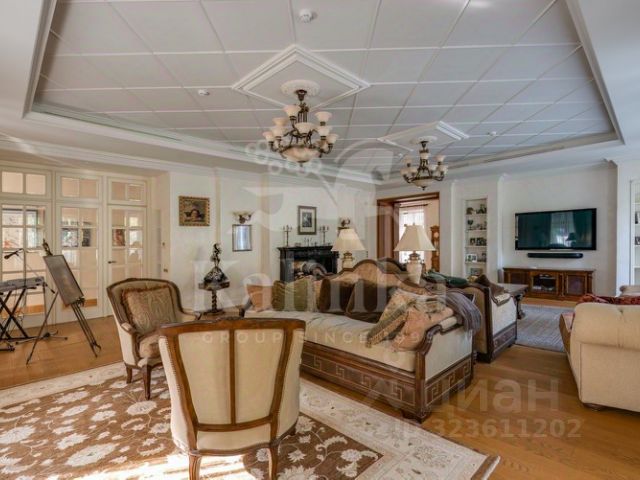 Лот: 9915399. ЭКСКЛЮЗИВ NF GROUP. Дом с мебелью 2800 кв.м на участке 340 cот. Кол-во спален: 4. Кол-во с/у: 8. Поселок "Мозжинка". Новорижское шоссе, 38 км от МКАД. Без комиссии для покупателя. Предлагается великолепная трехуровневая загородная резиденция, построенная на огромном живописном лесном участке с дорогим ландшафтным дизайном, в охраняемом коттеджном поселке "Мозжинка". Усадьба состоит из трех строений: основной дом, соединенный подземным проходом со служебным флигелем, в котором расположен гараж на шесть машин, также при въезде на территорию есть дом для охраны. Цоколь: душевая, 2 с/у, бильярдная, винная комната, гардеробная, кинотеатр, 3 кладовые, комната для шуб, массажный кабинет, оружейная, помещение свободного назначения, серверная, техническое помещение, тренажерный зал, холл, холодильная комната; 1 этаж: гостиная-столовая, душевая, прихожая, гостиная, кухня, 2 столовые, кабинет, 1/2 с/у, 2 с/у, бассейн, купель, сауна, библиотека, гардеробная, кладовая, комната отдыха, холл; 2 этаж: спальня, спальня с гардеробной и с/у, 2 спальни с с/у, 2 гардеробная, кладовая, терраса, холл. Посёлок находится в 30 км по Рублево-Успенскому шоссе от МКАД или по Новорижскому шоссе 38 км от МКАД. Уникальный в своем роде поселок Мозжинка, построенный в лесном массиве имеет свою историю, традиции и атмосферу. Стародачный поселок Мозжинка находится в непосредственной близости от города-спутника Звенигорода (запад Подмосковья), что дает возможность использовать в полном объеме инфраструктуру близлежащего города. Сейчас в Мозжинке живут наследники известных академиков: Вавилова, Александрова, Зелинского, Арцимовича, Челомея и других. В поселке есть магазин, кафе, клуб-кинотеатр, теннисный корт, футбольная площадка, детская площадка, живописная прогулочная зона с выходом к Москве-реке. Рядом расположен пансионат РАН, имеющий горнолыжный спуск и подъемник. Общественный транспорт. Автобусом от поселка Мозжинка до м.Молодежнаяили до г. Звенигорода. От Звенигорода прекрасное сообщение с Москвой автобусом или железнодорожным транспортом. Отличный дом премиум класса в поселке Мозжинка Московской области.