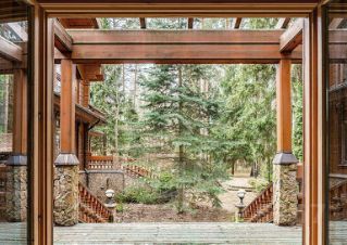 Дом расположен на живописном участке с вековыми соснами, имеющим уникальное расположение с двумя соседями. Участок правильной квадратной формы. Проведены ландшафтные работы: высажены кустарники и декоративные деревья, вымощены дорожки и установлено освещение.