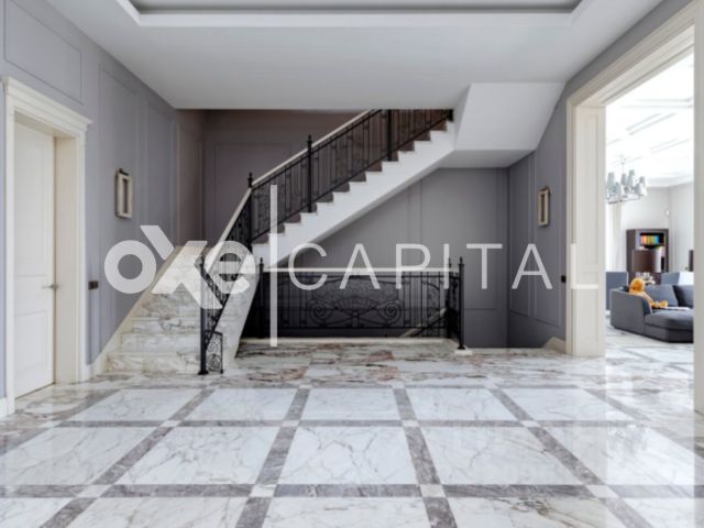 Резиденция площадью 2150 кв.м на участке 62 сотки расположена в 24 км от МКАД по Рублево-Успенскому шоссе в КП Рублевские горки. Удобный выезд на платную трассу.