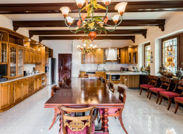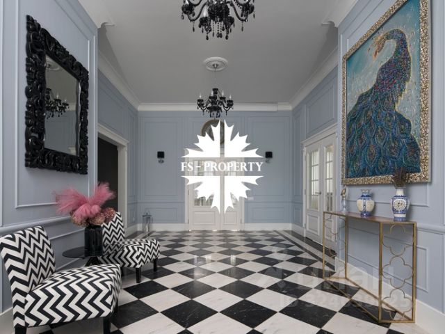 Продается уютный дом в классическом стиле, комфортный и функциональный, полностью укомплектованный мебелью и бытовой техникой. Цена: 188 000 000 рублей Площадь дома: 717 кв.м Участок: 45.04 сотки Планировка дома: 1-й этаж: • Холл • Гостевой санузел • Просторная гостиная с камином • Столовая • Кухня с кладовой • Санузел для персонала • Кабинет • Сигарная комната / зимний сад 2-й этаж: • Основная спальня с ванной комнатой, гардеробной и балконом • Детская спальня с комнатой для занятий / игровой, ванной комнатой, гардеробной и кладовой для игрушек • Гостевая спальня с ванной комнатой, гардеробной и лоджией Цокольный этаж: • Кинотеатр • СПА-зона (сауна, душевая, санузел, комната отдыха, массажная) • Спортзал • Котельная • Постирочная • Кладовая Участок: • Беседка с зоной для барбекю • Детская игровая площадка • Гараж на 3 автомобиля с мойкой и мастерской-кладовой • Квартира для персонала (две спальни, два санузла, кухня, пост охраны) • Теплица Коммуникации: • Магистральный газ (котел Buderus) • Электричество 60 кВт (свой трансформатор) • Генератор • Артезианская скважина • Септик Инженерия: • Система вентиляции • VR-система кондиционирования • Теплые водяные полы На участке выполнен профессиональный дренаж и ландшафтный дизайн. Локация: Удобный выезд на платный дублер. В непосредственной близости находятся магазины Азбука вкуса, Мираторг и клинический госпиталь Лапино. Этот дом станет отличным выбором для тех, кто ищет уединение и комфорт в окружении природы, при этом хочет находиться рядом со всей необходимой инфраструктурой.
