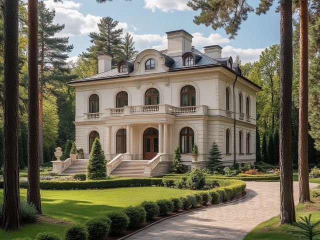 Элегантный особняк в современном стиле общей площадью 1517 кв.м на участке 44 сотки расположен в коттеджном поселке Никольская слобода, самом близком из всех элитных поселков Новорижского шоссе.