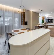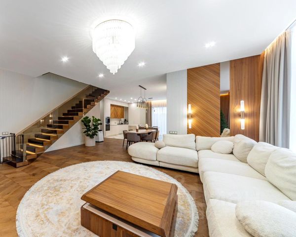 Дом площадью 470 кв.м. расположен на участке 20 соток в поселке С/Т Горки-2. В доме предусмотрены: 5 спален, 7 с/у, гардеробные комнаты, гостиная, кухня, столовая, терраса, постирочная, кладовая, игровая, бильярдная и кинотеатр. На участке также есть SPA комплекс, который включает в себя: бассейн, сауну, душевую, камин, гостиную, кухню и террасу. Помимо этого на участке расположен дом для персонала с 2 спальнями, кухней и с/у.