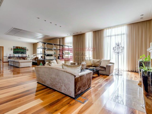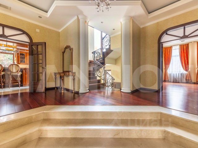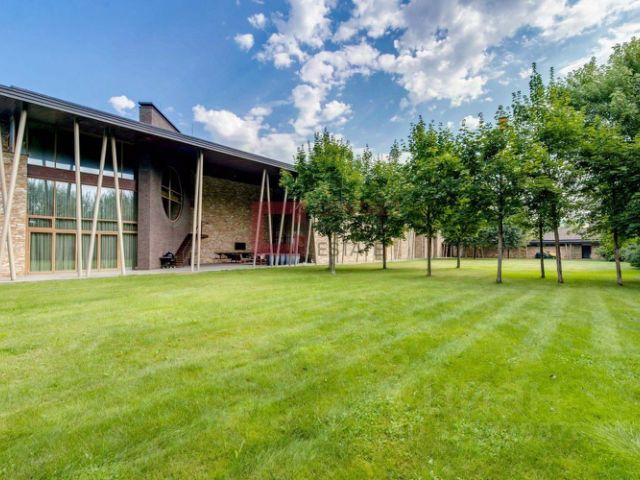 В доме: 4 спальни с ванными и гардеробными, гостиная-столовая, кухня, хобби-комната 50 кв.м, двухуровневая спа-зона с хаммамом, сауной и джакузи, гараж на 2 м/м с зарядкой для электроавтомобиля и помещением для водителя, котельная, отдельный блок персонала с профессиональной кухней в цоколе.