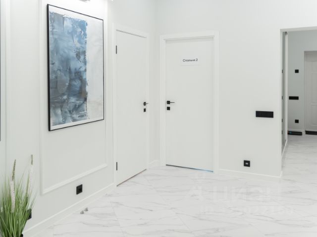 В доме: 4 спальни со своими ванными комнатами и гардеробными (одна из них - на первом этаже), просторная гостиная с камином, панорамным остеклением и выходом на летнюю веранду, большая и светлая кухня-столовая с кладовой для хранения продуктов и установки дополнительного холодильного оборудования, парадный холл с гардеробной, постирочная на втором этаже, гараж на 2 м/м в контуре дома.