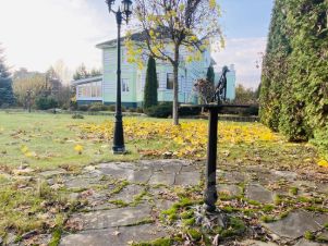 Солнечный участок правильной формы площадью 9,17 соток расположен в самой высокой части поселка. Уложен газон, посажена декоративная елка. Кованое ограждение по периметру участка выполнено в едином стиле поселка. Земли ИЖС. Все соседи живут круглогодично.