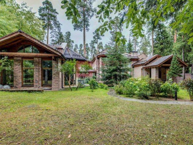 Кирпичный дом площадью 735 кв. м расположен на лесном участке размером 30 соток в элитном охраняемом поселке "Сосновый Бор", который находится в заповедной зоне векового леса.