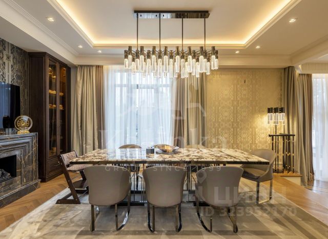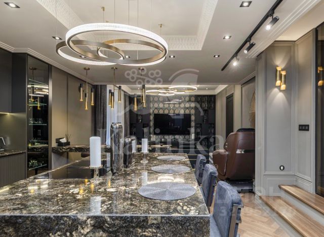 Номер в базе: J12097. Надежный, роскошный, прочный дом, обладающий изысканной индивидуальностью и дарящий ощущение непревзойденного аристократизма - этот дом построен в стиле шато. Родина замковой архитектуры - средневековая Франция, где шесть столетий назад на берегах Луары стали появляться дома знати, напоминающие замки и неприступные крепости. Если говорить об архитектурных стилях, то шато сочетает в себе черты ренессанса и рококо. От ренессанса - гармоничность пропорций и разделение на несколько ярусов. Влияние рококо читается в изящных фронтонах. Стены внутри дома покрыты венецианской штукатуркой с добавлением марсельского воска, в оформлении интерьера использована поталь, а также натуральная древесина благородных пород. В доме продуманные планировки с просторными комнатами и санузлами при каждой спальне. В контуре дома оборудован бассейн, а также есть встроенный тёплый гараж для двух автомобилей. На территории участка, помимо основного дома, расположены: двухэтажный гостевой дом (1 этаж: холл, гостиная, кухня, санузел; 2 этаж: 4 спальни, 2 санузла), отапливаемая летняя кухня с зоной барбекю и летний гараж на два автомобиля. Все коммуникации центральные, дополнительно резервные скважина и септик. Благодаря таким классическим элементам стиля шато, как фундаментальная лестница в главном доме, обрамленная коваными перилами, обязательное наличие цокольного этажа, расположенными на участке несколькими строениями, помимо основного дома - появляется ощущение крепости или родового гнезда для совместного проживания нескольких поколений. Это ощущение особенно подчеркивается приватным расположением на просторном участке и тишиной, окружающей дом. Цоколь: зона для отдыха, сауна, хамам, душевая, прачечная, ледогенератор, санузел, бытовая комната, щитовая, водоочистка, котельная, погреб Этаж 1: гардероб, холл, кухня, гостиная/столовая, санузел, комната с панорамными окнами с выходом на терассу, бассейн Этаж 2: мастер спальня из 2 комнат с санузлом; 3 спальни с санузлами, 1 спальня над гаражом. Этаж 3: холл с комнатой для отдыха, кабинет, 2 санузла Дополнительные строения: бассейн, баня, гараж м\м, гостевой дом, доп. строения, барбекю, помещение для персонала