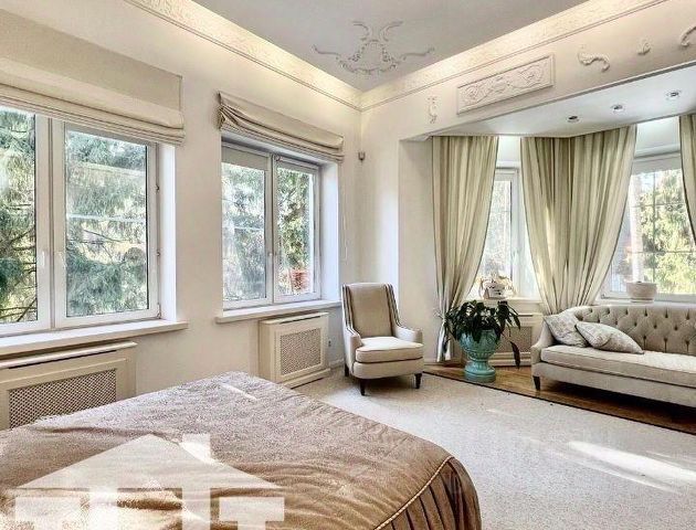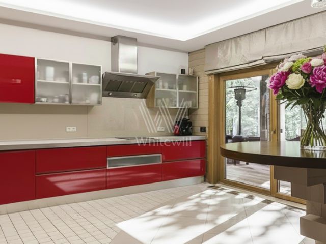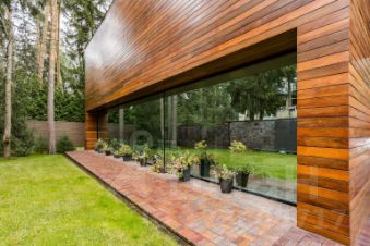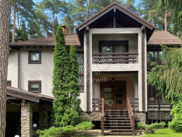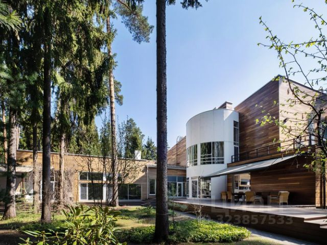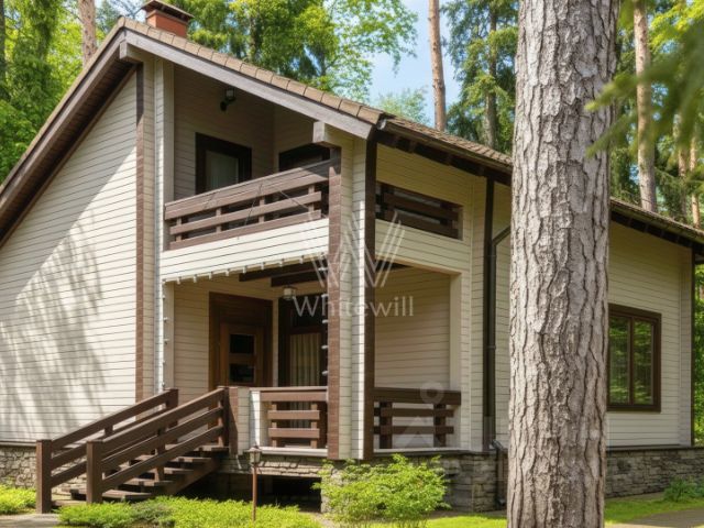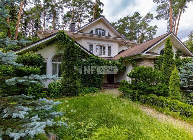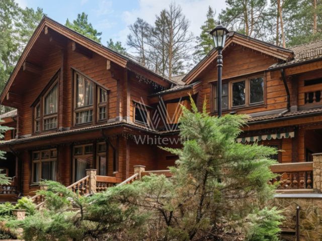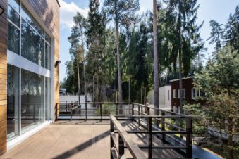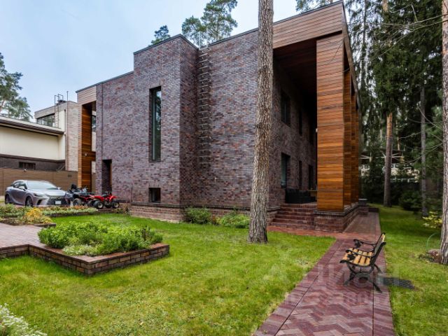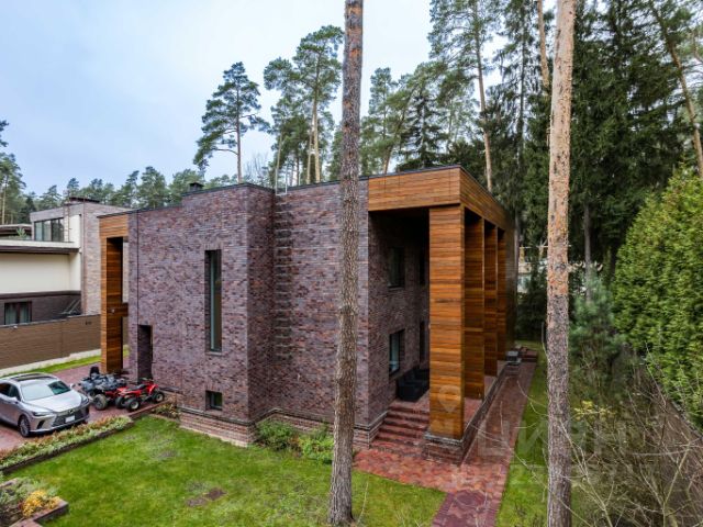 Кирпичный дом площадью 735 кв. м расположен на лесном участке размером 30 соток в элитном охраняемом поселке "Сосновый Бор", который находится в заповедной зоне векового леса.