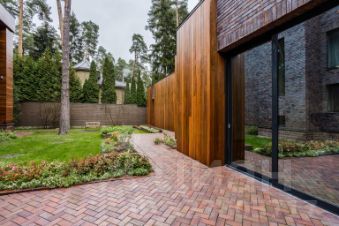Дом расположен на живописном участке с вековыми соснами, имеющим уникальное расположение с двумя соседями. Участок правильной квадратной формы. Проведены ландшафтные работы: высажены кустарники и декоративные деревья, вымощены дорожки и установлено освещение.