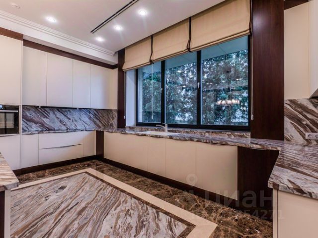 ID 1986 Предлагается к продаже стильный дом с отделкой в стиле современной классики. Общая площадь дома - 967,94 м 2 , участок - 34,27 сотки в коттеджном поселке Барвиха XXI в 5 км от МКАД по Рублево- Успенскому шоссе. Хвойный лес вокруг, инфраструктура Рублево-Успенского шоссе и близость поселка к столице делают его необычайно привлекательным для проживания. Планировка 1 этаж: прихожая, профессиональная кухня, кухня-столовая, гостиная, кабинет с с/у, гостевой с/у, гардеробная, комната для персонала с с/у, котельная, гараж на 2 м/м; 2 этаж: холл, 4 спальни с собственными ванными комнатами и гардеробными. Стиль интерьера - современная классики с уклоном в американский люкс. Стены в пастельных тонах, пол выложен мрамором, дизайнерские элементы декора, на стенах авторские панно. Один из ключевых элементов роскошной гостиной - декорированная ониксом стена, в которую вмонтирован домашний кинотеатр. Дорогая мягкая мебель в глубоких серых тонах, светильники от известных дизайнеров. Строгий кабинет со встроеным шкафом-библиотекой из благородных пород дерева. Три спальни в шоколадных оттенках со стенами цвета "лиловая пудра" создают неповторимую мягкость и свежесть в интерьере. Еще одна спальня на 2 этаже выполнена в более холодных оттенках морской волны. Облицовка санузлов выполнена мрамором, встроенные зеркала, сантехника и мебель премиальных брендов. Территория поселка огорожена и охраняется. Круглосуточно ведется видеонаблюдение. Въезд в поселок осуществляется через КПП со шлагбаумом. Объект 54546-1986.