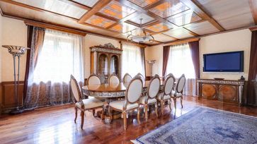 Номер в базе: J7970. В одной из самых ближних, удобных и востребованных локаций Рублёво- Успенского шоссе продаётся надёжный дом, построенный из кирпича, снаружи облицованный натуральным камнем. Участок ровный, правильной формы. Помимо основного дома на участке расположена крытая беседка, в которой оборудована профессиональная кухня. В основном доме, в отдельном крыле, есть автономная зона для персонала. Во внутренней отделке основного дома использовано натуральное дерево ценных пород, керамическая плитка высокого качества. Мебель и техника в доме производства ведущих европейских брендов премиального уровня. В доме функциональные планировки, удобные и комфортные для жизни. В отдельной части дома находится СПА- зона с сауной, хаммамом и выходом на участок на террасу с всесезонной подогреваемой джакузи. Тихое место, респектабельное окружение, охраняемый поселок, Москва всего в семи километрах или 10-12 минутах езды на автомобиле. В пешей доступности прекрасный парк Раздолье. Мансарда: зона отдыха Этаж 1: прихожая, два с/у, холл, столовая, кухня, гостиная со вторым светом и выходом на участок, парадная столовая с камином, зимний сад с выходом в галерею, домашний кинотеатр, СПА-зона ( хаммам, сауна, 2 душа, с/у; тренажерный зал, комната отдыха с массажным столом и солярием, с/у); блок для персонала (кухня, 3 спальни, комната для охраны, с/у, постирочная, котельная), гараж на 3 машины. Этаж 2: мастер- спальня с с/у и гардеробной, две детские спальни с с/у, две гостевые спальни с с/у Дополнительные строения: баня, гараж м\м, барбекю, помещение для персонала Продам дом в территории ГП-4 в деревне Шульгино.