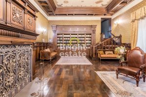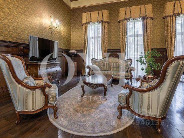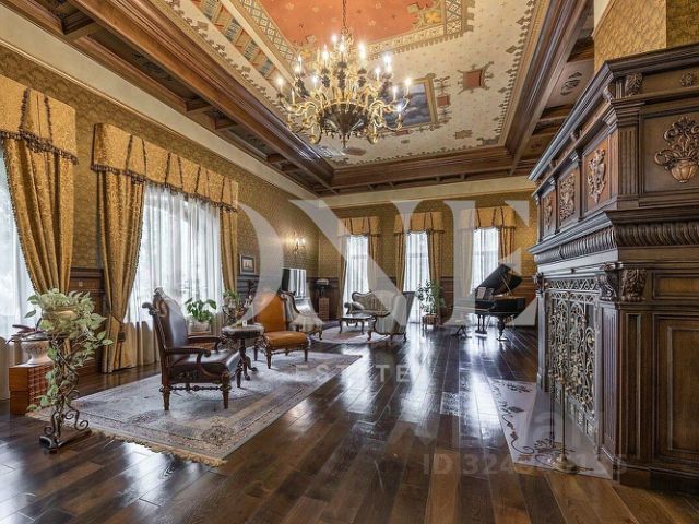 В доме: 4 спальни с ванными и гардеробными, гостиная-столовая, кухня, хобби-комната 50 кв.м, двухуровневая спа-зона с хаммамом, сауной и джакузи, гараж на 2 м/м с зарядкой для электроавтомобиля и помещением для водителя, котельная, отдельный блок персонала с профессиональной кухней в цоколе.