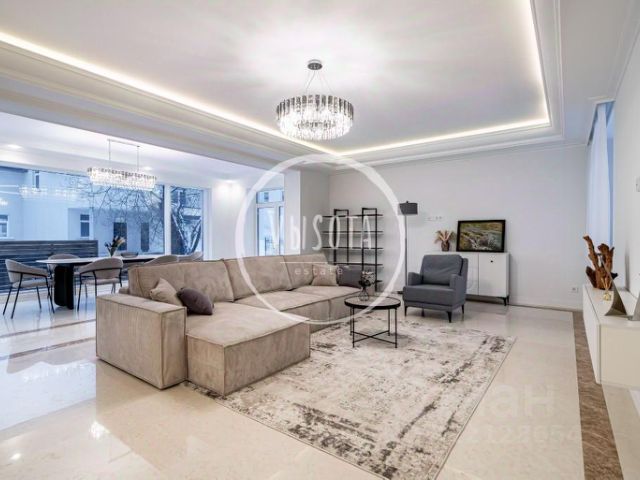 Лот: 9918738. ЭКСКЛЮЗИВ NF GROUP. Дом с мебелью 472 кв.м на участке 8 cот. Кол-во спален: 4. Кол-во с/у: 5. Поселок "Усово-8". Рублево-Успенское шоссе, 10 км от МКАД. Без комиссии для покупателя. Загородный дом, площадью 472 кв. м на участке 8 соток в уютном, небольшом коттеджном поселке на Рублевке. Фасад здания в европейском стиле отделан немецким клинкерным кирпичом. Установлены деревянные окна из золотистого дуба и декоративная подсветка. Имеется гараж на 2 м/м, на участке сделан ландшафтный дизайн. Современный интерьер сочетает светлые оттенки стен, дубового паркета и ярких акцентов в виде каминного портала из цельного куска каррарского мрамора, мебели из палисандра ручной работы, дизайнерской мебели ведущих итальянских брендов Cassina, Poltrona Frau, Pianca, кухня оборудована бытовой техникой Gaggenau. Точка притяжения в доме - "Зимний сад" с камином, со вторым светом и панорамным остеклением, открывающим выход во внутренний дворик со своим патио и очаровательным декоративным садом. На втором этаже 3 спальни с со своими санузлами и гардеробными. Две большие спальные комнаты имеют собственные балконы, а одна из них двух двухуровневую планировку. На Цокольном этаже - место для отдыха с финской сауной, помещения для хранения, комнаты для персонала и котельная с отдельным входом. Дом оснащен передовыми инженерными системами: премиальная сантехника из Италии и Германии, интеллектуальное управление климатом и безопасностью через приложение (включая систему Buderus с двумя котлами), бесшовныи интернет, приточно-вытяжная система и канальное кондиционирование Daikin. Установлены пожарная сигнализация и датчики протечек, видеонаблюдение по периметру дома, ландшафтное и фасадное освещение. 1 этаж: прихожая, холл, гардеробная, су, кабинет, кухня, гостиная-столовая, зимний сад, гараж на 2 м/м; 2 этаж: холл, детская спальня со своим с/у, большой детский блок: спальня, гардеробная, ученическая, ванная комната, балкон, мастер блок: спальня, гардеробная, ванная комната, балкон; Цоколь: холл, зона спа: сауна, душевая, массажная, гардеробная, зона персонала: спальня, кухня, су, постирочная, котельная. Продуманный ландшафтный дизайн с разнообразными растениями и тщательно спланированным освещением создает особую атмосферу в любое время суток. Коттеджный поселок "Усово-8" расположен в Одинцовском районе в 10 км от МКАД. Внутренняя инфраструктура коттеджного поселка "Усово-8" представлена фитнес-центром с бассейном, саунами, залами для групповых занятий и тренажерным залом, гостиной комнатой, кафе и административным корпусом. В непосредственной близости находятся объекты инфраструктуры Рублево-Успенского шоссе.