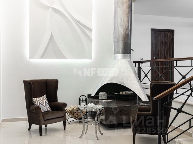 Внутренняя отделка коттеджа выполнена в стиле минимализма с элементами модернизма, что придает дому элегантный и современный вид. Просторные и светлые комнаты, высокие потолки и продуманное освещение создают уют и комфорт. В доме предусмотрены все необходимые помещения: кухня, столовая, каминный зал, гостиная, спальня с гардеробной, гостевая спальня и кабинет с балконом. Для вашего отдыха и здоровья здесь есть спортзал, сауна, комната отдыха и бассейн с водопадом.
