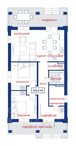 - 2-й этаж три спальни с отдельными санузлами и гардеробными (в том числе мастерспальня);