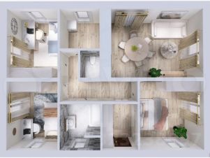 - мансарда с просторной детской зоной, состоящей из двух комнат и санузла.