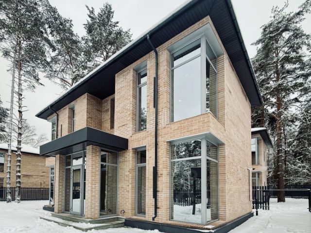 Цоколь отделан натуральным камнем.
