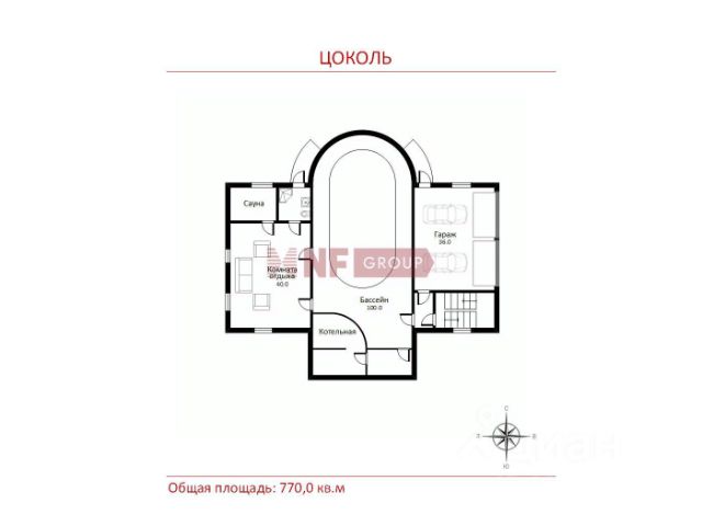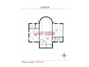 1-й этаж: Холл, гардеробная, Спа-зона с бассейном, постирочная, с-у, котельная, помещение для сезонного хранения, Гараж на 2 автомобиля