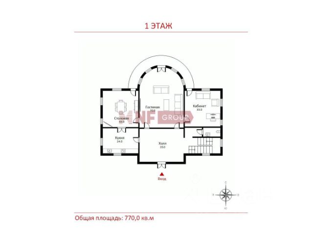 2-й этаж: гостиная со вторым светом и камином дровяным, кухня- столовая, с-у, кабинет.