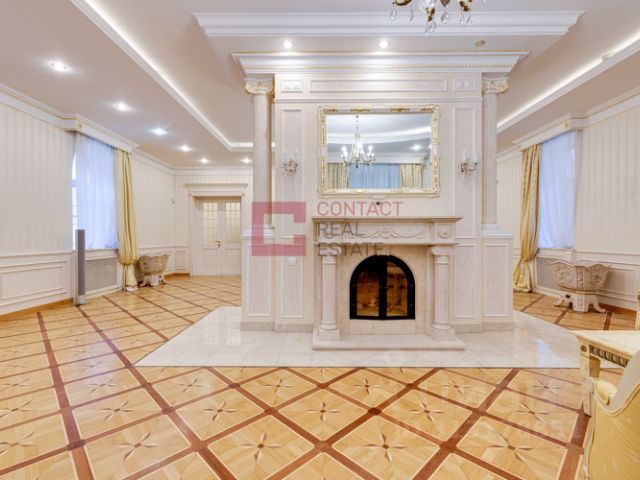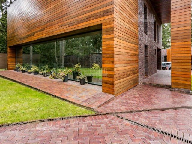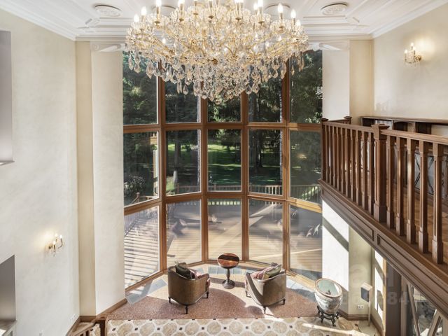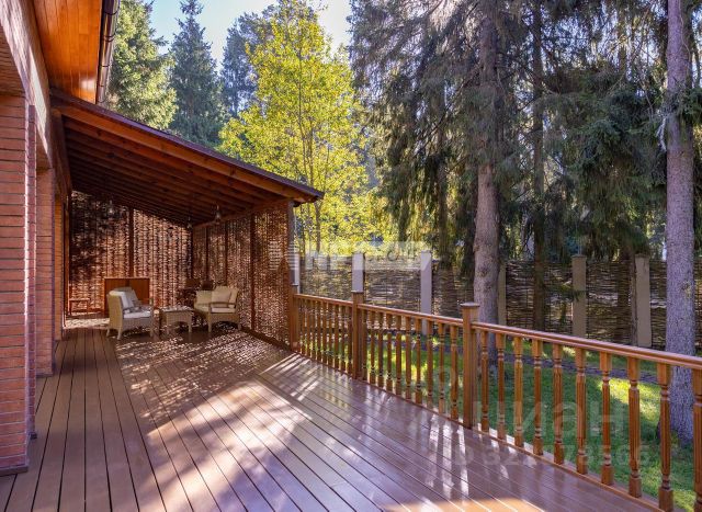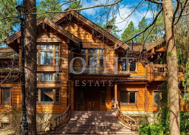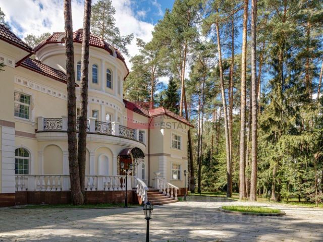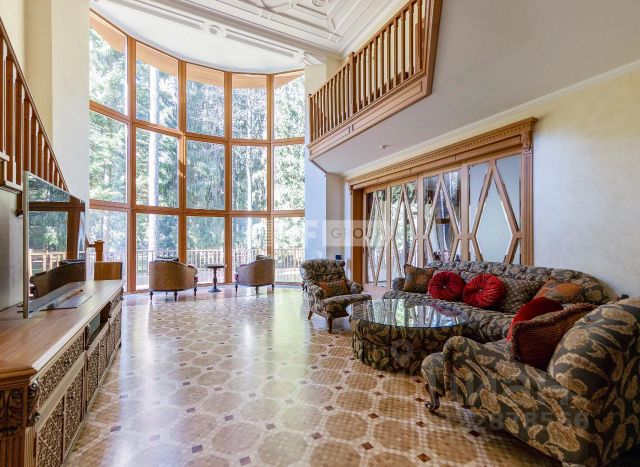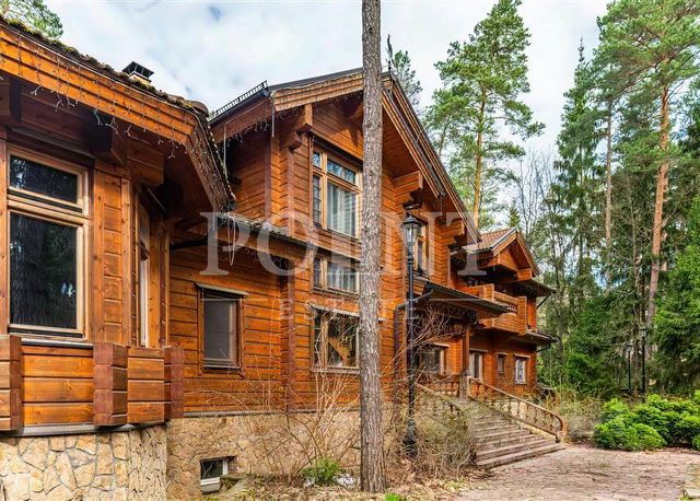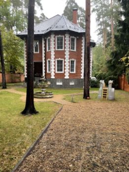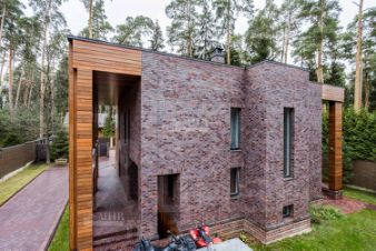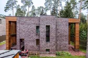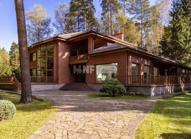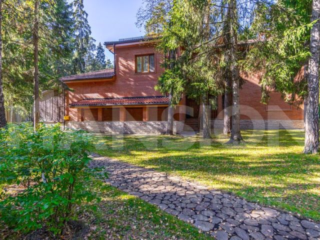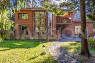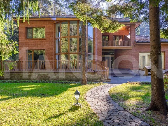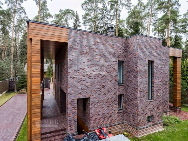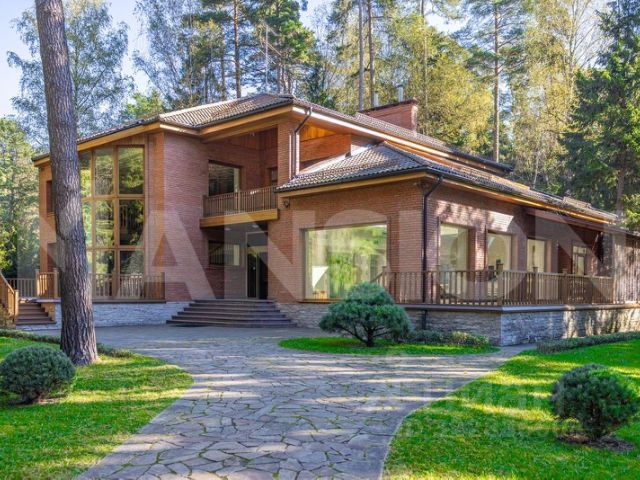 Кирпичный дом площадью 735 кв. м расположен на лесном участке размером 30 соток в элитном охраняемом поселке "Сосновый Бор", который находится в заповедной зоне векового леса.