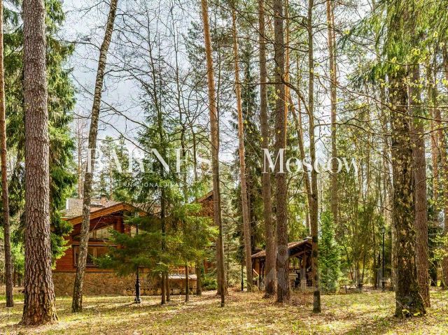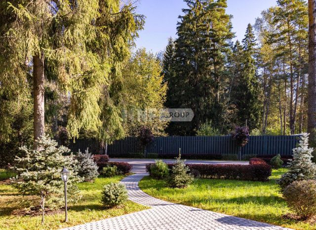 Дом расположен на живописном участке с вековыми соснами, имеющим уникальное расположение с двумя соседями. Участок правильной квадратной формы. Проведены ландшафтные работы: высажены кустарники и декоративные деревья, вымощены дорожки и установлено освещение.