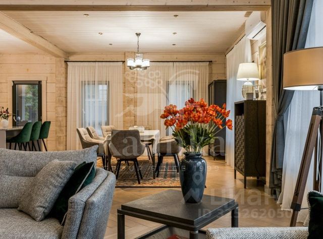 Продается загородный дом 229,3 м2, сочетающий в себе современную архитектуру и комфортную концепцию для загородной жизни . Дом полностью готов к проживанию: сделан дизайнерский ремонт, установлена мебель, выполненная на заказ по дизайн-проекту, установлена вся необходимая бытовая техника премиальных марок. Участок 21,84 соток, лесной, ровный, преимущество расположения на данном участке в том, что у дома только 1 сосед, выполнен ландшафтный дизайн, предусмотрено уличное освещение, высажены растения, много деревьев, берёзы, яблони, елки, а также парковочная площадка под 2 машино-места, открытый бассейн , беседка. По периметру участок огорожен , установлены электрические ворота . При внутренней отделке использовались исключительно качественные натуральные материалы. Основная информация о доме: — Общая площадь дома 229,3 , дополнительно составляют открытые пристройки: большая терраса, патио, лоджии на этажах , баня, домик гостевой. — По планировке в доме предусмотрено: 1 этаж: зимний сад с выходом на террасу, гостиная с камином, большая столовая, кухня, гостевой сан узел, котельная, хозяйственная комната и комната для обсуживающего персонала/охраны; 2 этаж: мастер спальня со своим санузлом и балконом, две полноценные спальни, кабинет, второй санузел, гардеробная комната, большая терраса; — Особенность данного проекта - это второй свет, высота потолков в зонах спален до 4,5 м Баня: Санузел с душевой кабиной, парилка и комната отдыха. О расположение дома : дом расположен в окружении лесного массива ; Внутри поселка созданы все условия для комфортного проживания; асфальтные подъездные дороги, улицы с тротуарами и освещением. Ближайшая развитая инфраструктура: продуктовые магазины , аптеки , салоны красоты , рестораны , кафе, парк Патриот . Одна из лучших в Подмосковье транспортная доступность : без пробок 40 минут до Москвы через Северный объезд Одинцово и проспект Багратиона .