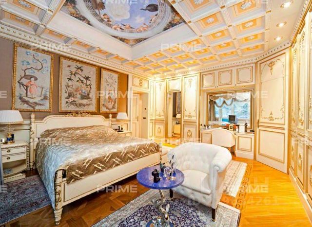 Третий этаж - это мастер-сьют площадью 110 м, созданный, как отдельный мир внутри дома. Просторная спальня с зоной отдыха наполнена светом, а панорамные окна и собственная терраса открывают живописный вид на сад. Две гардеробные, выполненные на заказ, позволяют организовать пространство без компромиссов. Просторная ванная комната выполнена с использованием великолепного мрамора AFYON VIOLET, сантехники GESSI и VILLEROY & BOCH. А ванна, расположенная у панорамного окна, позволяет наслаждаться видом окружающей природы. В спальне - торшер от JNL и бра от EICHHOLTZ, которые создают мягкий вечерний свет, идеально подходящий для чтения или отдыха.