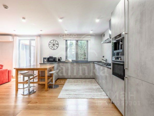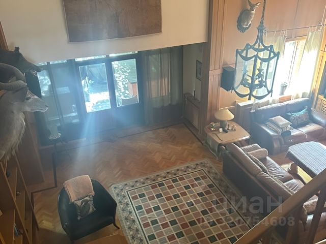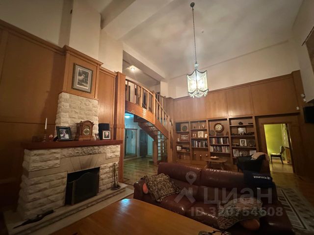 Из уютной гостиной (высота потолков более 6 м), выдержанной в светлых теплых тонах, можно попасть в столовую с панорамными окнами. В столовой имеется подогрев полов. В гостиной имеется действующий дровяной камин из розового мрамора. Полы из итальянского мрамора теплого песочного цвета с инкрустацией мрамором зеленого цвета. На первом этаже помимо гостиной 50,5 кв. м., столовой 19,34 кв.м., отдельной кухни 19 кв.м. располагается одна из спален 22 кв.м. с индивидуальной ванной комнатой, гостевой санузел, холлы. На втором этаже находятся еще 3 спальни. Из основной спальни 40,72 кв. м., имеющей индивидуальную ванную комнату, отделанную розовым мрамором с инкрустацией зеленым мрамором, есть выход на собственную террасу. Вид из всех окон и террас дома на зелень, в сад. Соседних домов не видно. Приватно и тихо. В цокольном этаже (с окнами) находятся сауна, бассейн, тренажерная, душевая, санузел, гардеробные, постирочная, комната для помощницы, бойлерная, гараж. Имеется мансарда свободного назначения.