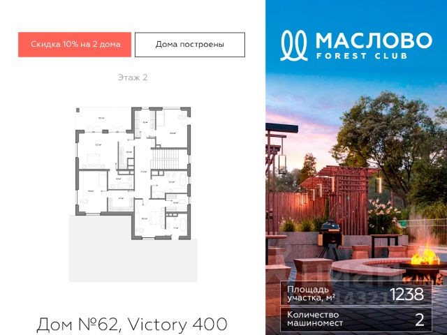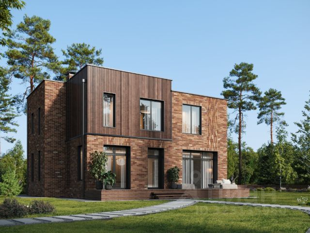 В основном доме: 4 спальни с ванными комнатами и гардеробными, просторная гостиная с эркерной зоной и дровяным камином, столовая с панорамным остеклением и отдельная кухня. Дом предлагается под чистовую отделку.