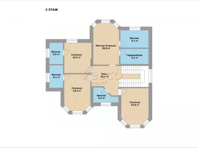 Мастер спальня (20) с ванной комнатой (9,2) и гардеробной (9,2).