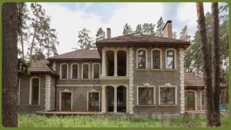 Современное домовладение общей площадью 1008 кв.м на живописном зеленом участке 32 сотки в 23 км от МКАД по Ильинскому шоссе в охраняемом КП Европа-1. Сам поселок утопает в зелени и находится в окружении огромного хвойного лесного массива со статусом особо охраняемая территория площадью 744 Га.