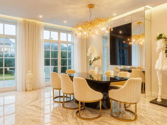 ID 7989. Дом в коттеджном посёлке "Раздоры-2". Посёлок находится всего в 5 км от Москвы по Рублёво-Успенскому шоссе, в экологически чистой зоне лесистого побережья Москвы-реки. Проект разработан британскими архитекторами и соответствует высоким стандартам класса De Luxe - это идеальный выбор для тех, кто ценит комфорт и роскошь. Панорамное остекление наполняет интерьер естественным светом и создаёт ощущение единства с окружающей природой, а продуманное пространство обеспечивает комфортное проживание даже большой семье. На первом этаже расположены гостиная, холл, терраса, кухня, гардеробная, санузел, сауна, помещение для персонала, гараж и котельная. На втором этаже — мастер-спальня с санузлом и гардеробной, а также две спальни с собственными санузлами. Третий этаж занимают гардеробная, кабинет, SPA-зона, тренажёрный зал и хаммам. В посёлке расположены комфортабельные коттеджи в английском стиле, окружённые роскошным ландшафтом. Здесь есть всё необходимое для комфортной жизни: охраняемая территория, прогулочные зоны, парковая зона, велосипедные дорожки, детские и спортивные площадки, шезлонги, гостевые парковки. Рядом расположены Жуковка и Барвиха с инфраструктурой премиум-качества. В нескольких минутах на машине от коттеджного посёлка "Раздоры-2" расположены Barvikha Luxiry Village. Номер лота: 7989 Купить дом с газом в деревне Раздоры Московской области.