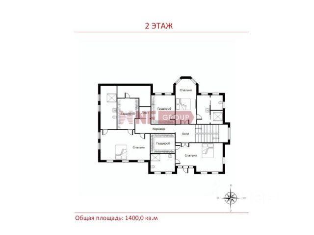 3-й этаж: Мастер блок состоящий из просторной спальни, 2 гардеробных комнат и ванной комнаты. из мастер блока также предусмотрен выход на террасу.