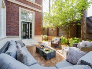 Территория виллы - продолжение архитектурной идеи. Ландшафтный дизайн включает газон, малые архитектурные формы, барбекю-зону и две просторные террасы. Гараж на 4 автомобиля оснащён системой подзарядки электромобилей. Архитектурная подсветка фасада и сада создаёт вечернюю атмосферу уюта и статуса.