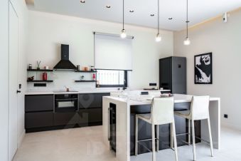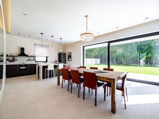 Интерьеры выполнены в сдержанном европейском стиле - много света, высокие потолки, натуральные материалы в отделке: пол- камень и канадский массив, окна- деревянные. Пространство спроектировано так, чтобы быть комфортным сразу после заезда: нет необходимости в доработках, ремонтах или подборе мебели. Планировка сбалансирована: зоны для отдыха, работы и уединения органично сочетаются в общем объеме дома. Благодаря продуманной логистике и функциональной расстановке мебели, здесь удобно как для жизни всей семьей, так и для приема гостей.