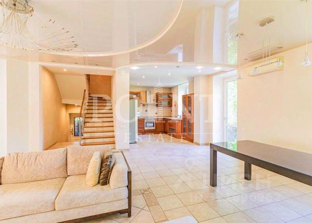 Дом выполнен в современном стиле с элементами классики и ар-деко. В отделке использованы только высококачественные материалы: натуральный камень, дерево, мрамор, стекло. Интерьеры дома поражают своей элегантностью, изысканностью и функциональностью. Здесь есть все для комфортной жизни. Просторная гостиная с потолками 11 метров объединенная с зимним садом двухсторонним камином. Полностью оборудованные кухня и столовая. 4 спальни со своими гардеробными и ванными комнатами. Два кабинета, библиотека, игровая комната для детей, спортзал, сауна, хамам, снежная комната, криосауна, пятиметровый бассейн с противотоком, домашний кинотеатр и комната для прослушивания музыки.