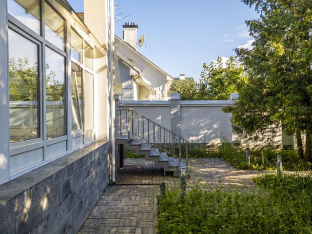 Первый этаж: Прихожая, гардеробная для верхней одежды и уличной обуви, помывочная для собак, оснащенная отдельной стиральной машиной, небольшой санузел, кухня-столовая-гостиная с остеклением в пол и выходом на просторную нижнюю крытую террасу, кладовая с большим морозильником, винным шкафом и стеллажами для хранения, гостевая спальня с санузлом, кабинет, котельная со всеми инженерными системами. На второй этаж ведет широкая бетонная лестница с шаговой подсветкой, облицованная натуральным деревом. Второй этаж: мастер-спальня (31кв.м с гардеробной (12 кв.м) и большим санузлом с инфракрасной сауной и тропическим душем, вторая спальня с выходом на верхнюю террасу, со своим санузлом с ванной, кабинет-библиотека, чистая постирочная со стиральной и сушильной машинами, небольшая кладовка.
